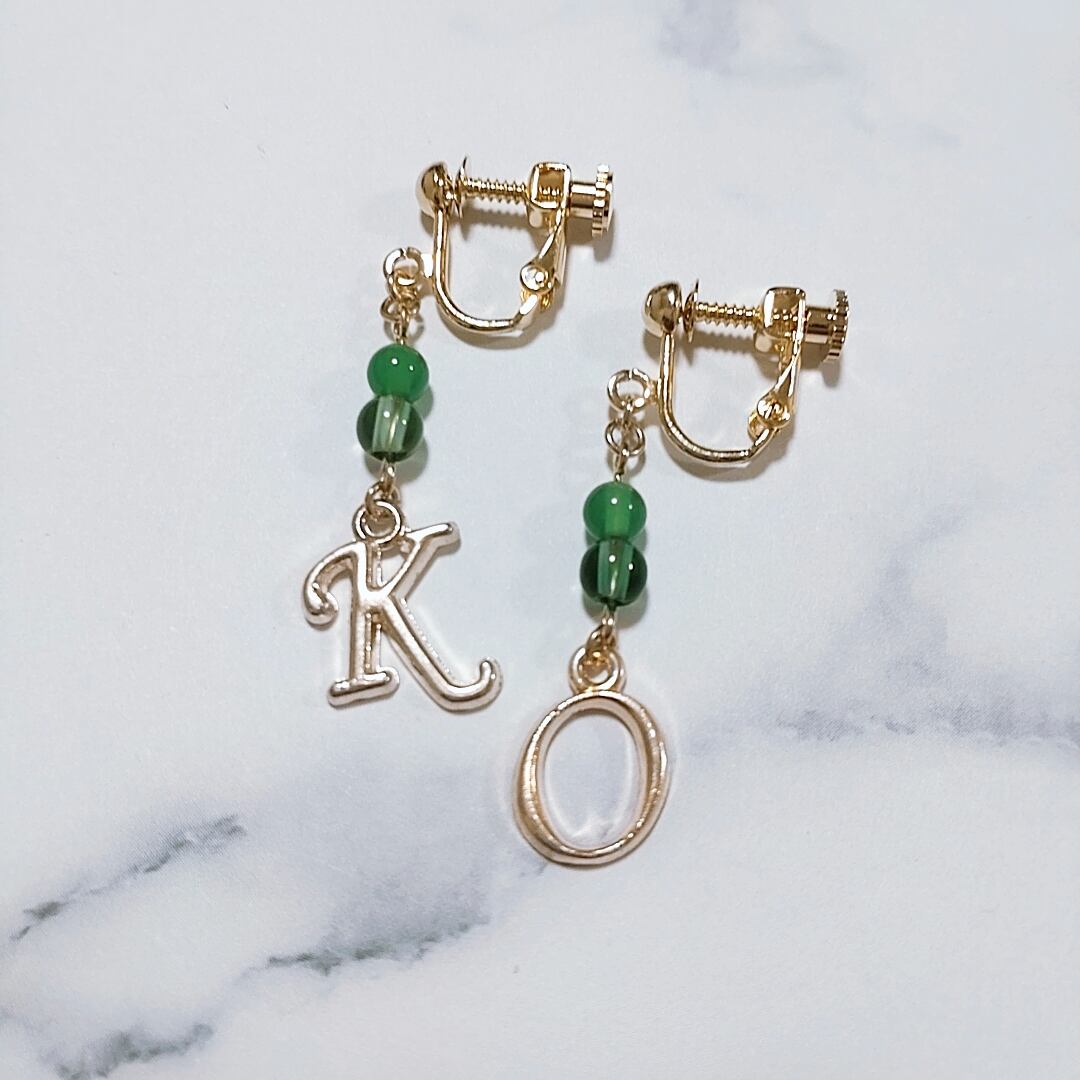 なにわ男子のメンバーのイニシャルをメンバーカラーの天然石と合わせてイヤリングにしました