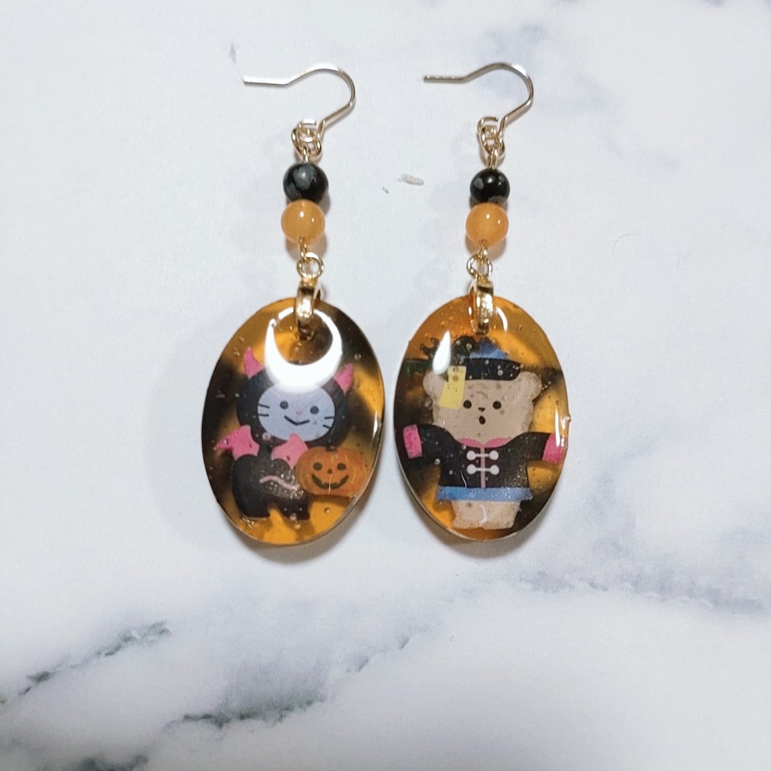 ハロウィンピアスは、悪魔やキョンシーをテーマにしたユニークなデザインが特徴です。