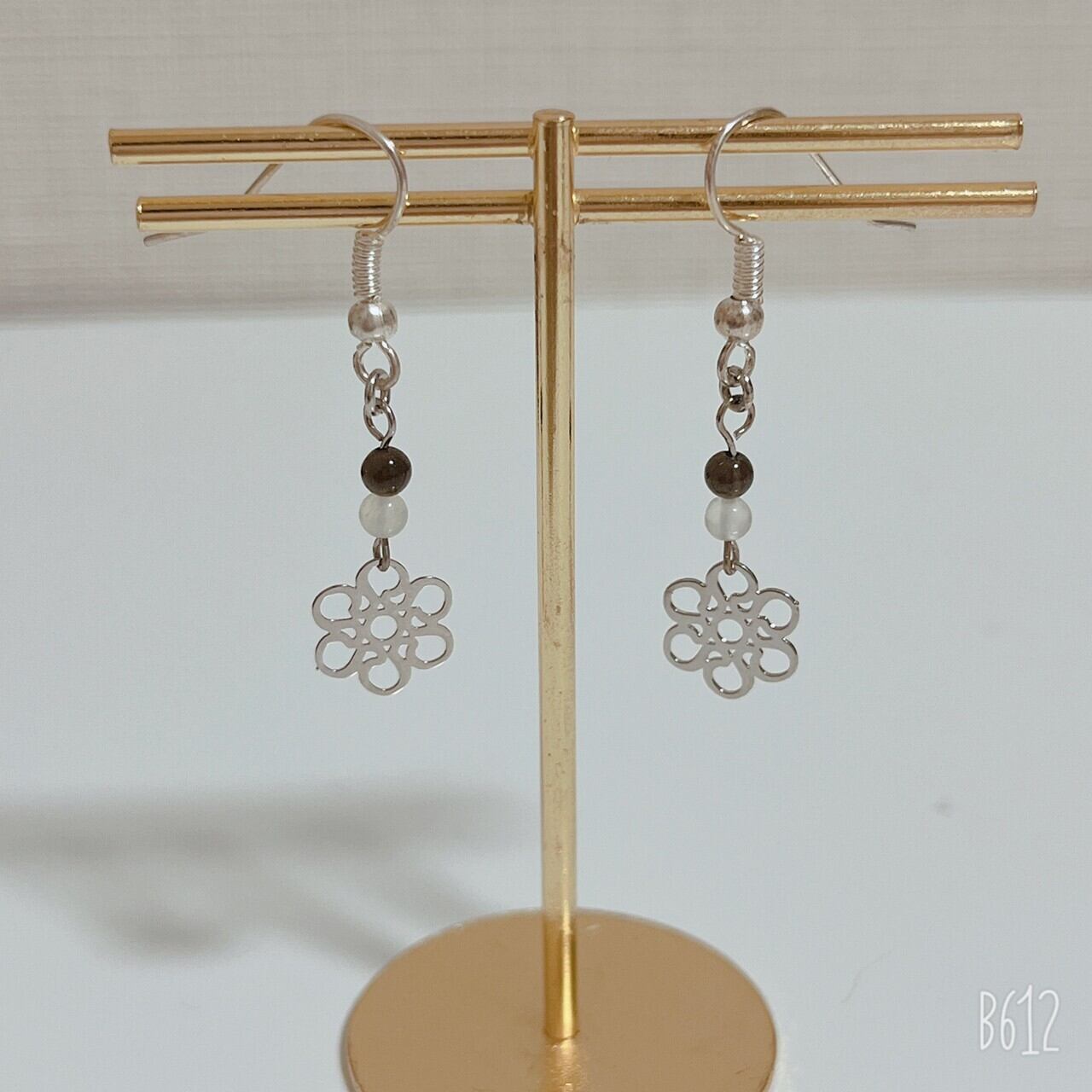 シルバーのお花と天然石のビーズを合わせて作りました