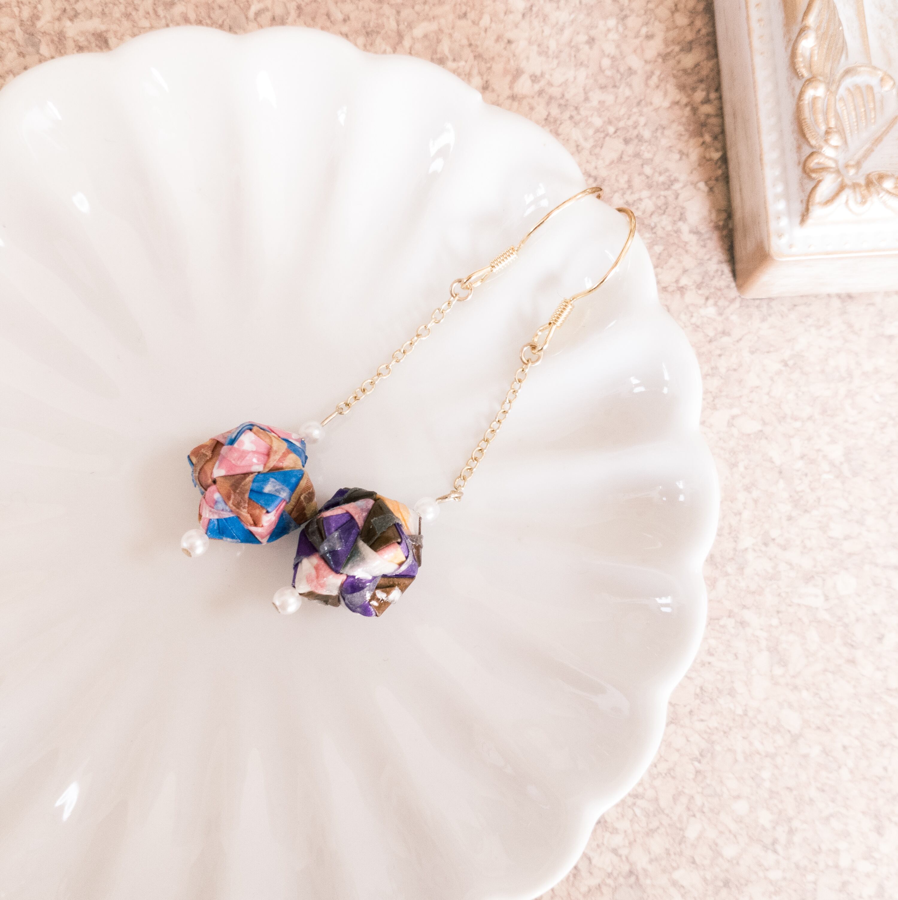 くす玉とパールのピアス
