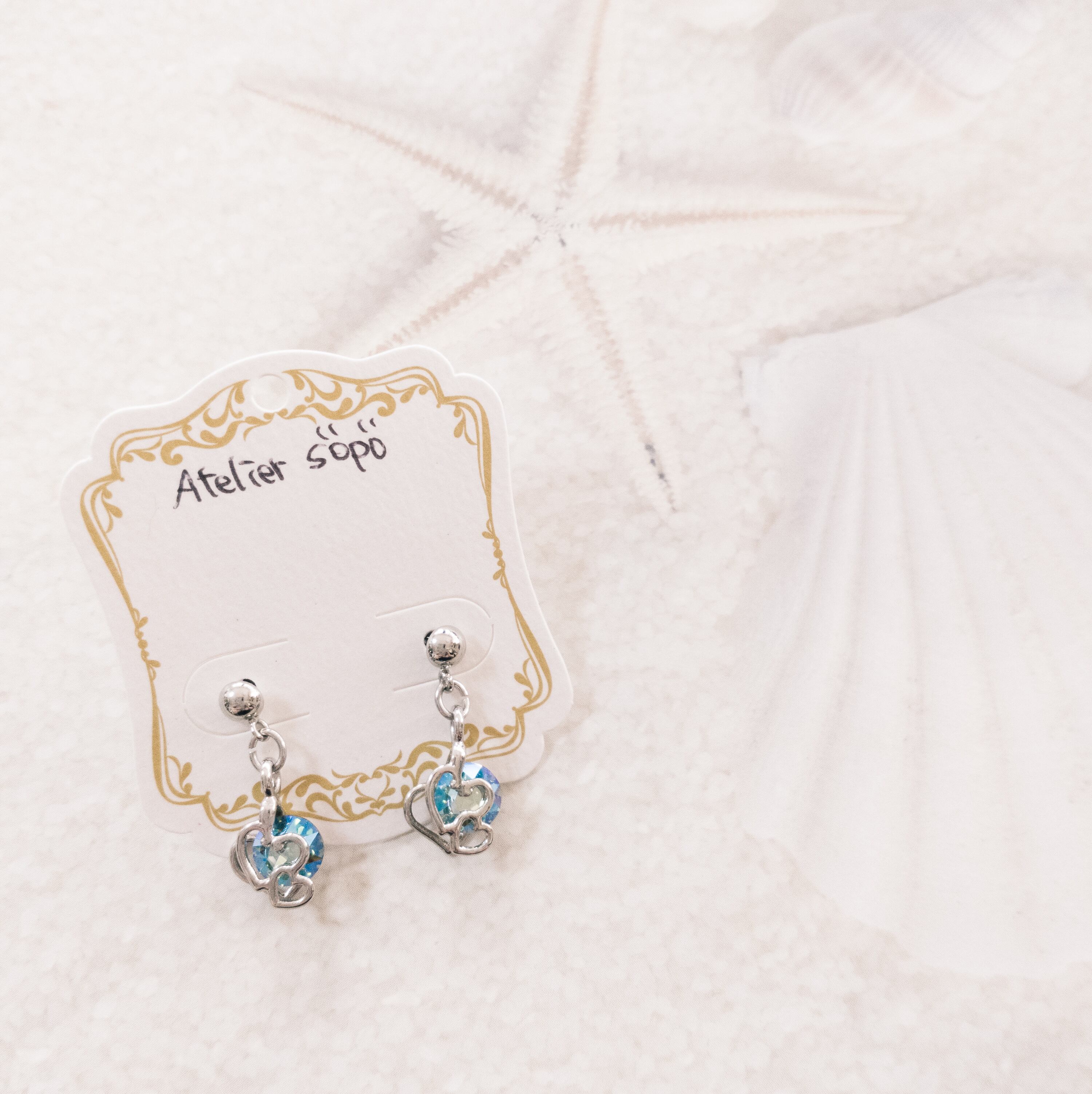 ハート♡型のスワロフスキーキャッチにスワロフスキーをはめて作りました