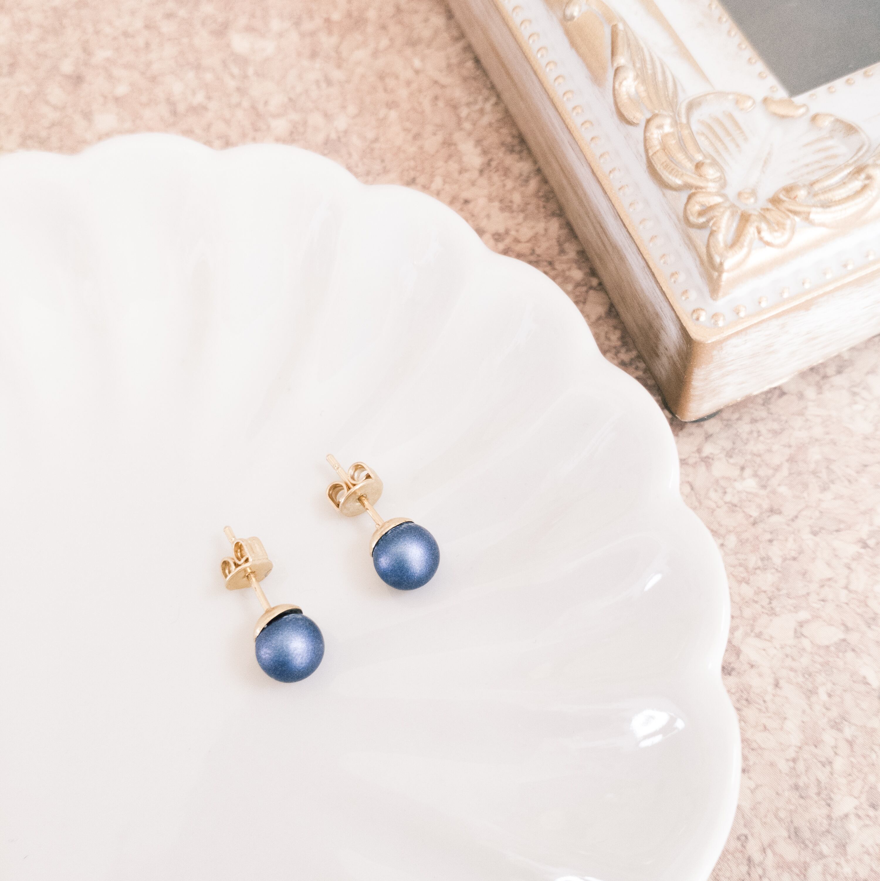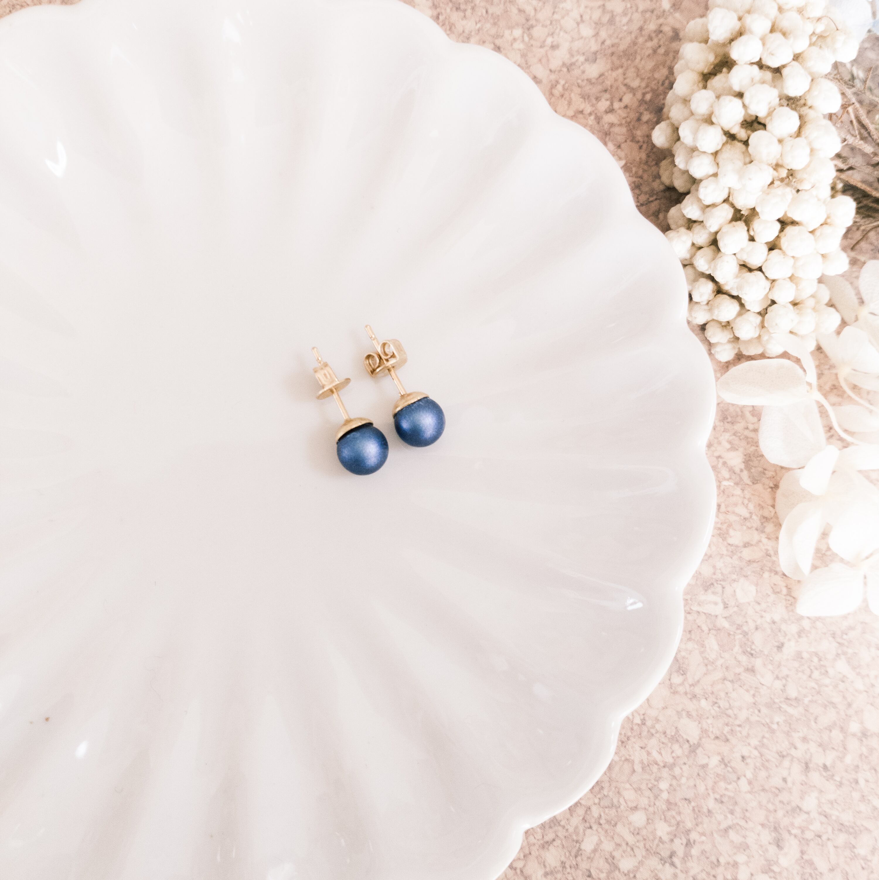 青のパールをピアスにしました