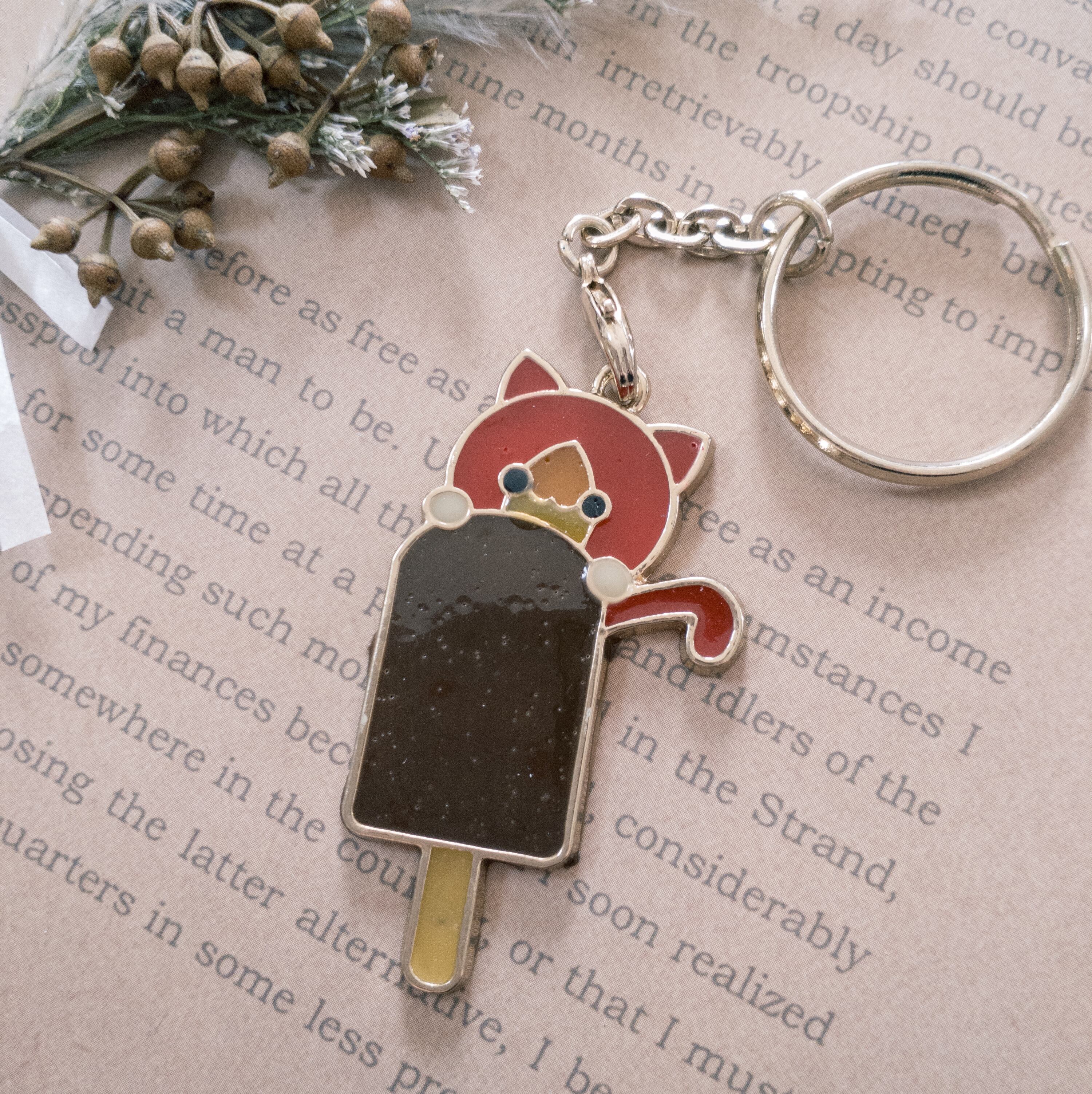 レジンで着色したアイスからネコがのぞいているキーホルダーです