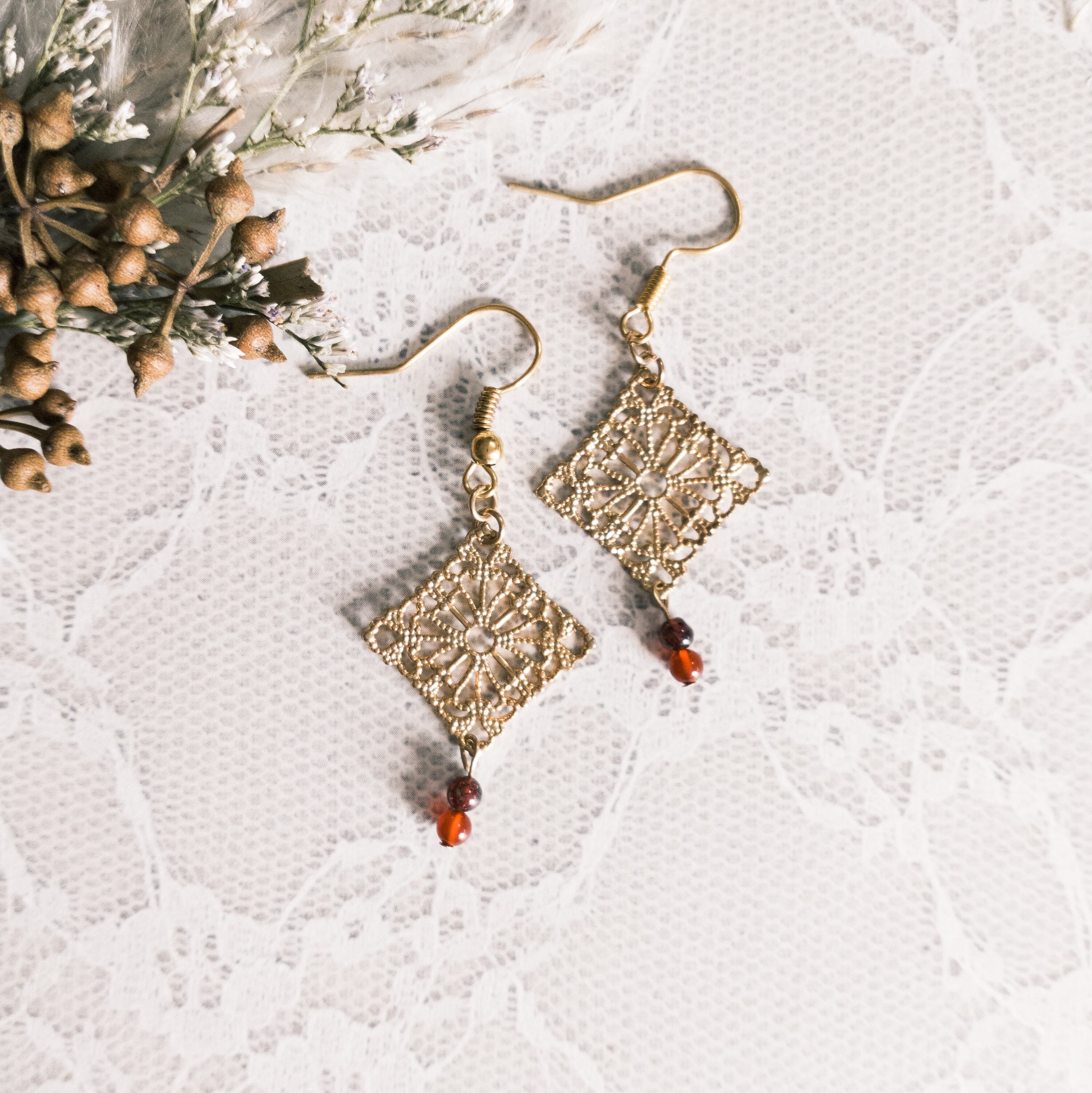 レース調のゴールドパーツと天然石のビーズを合わせてピアスにしました