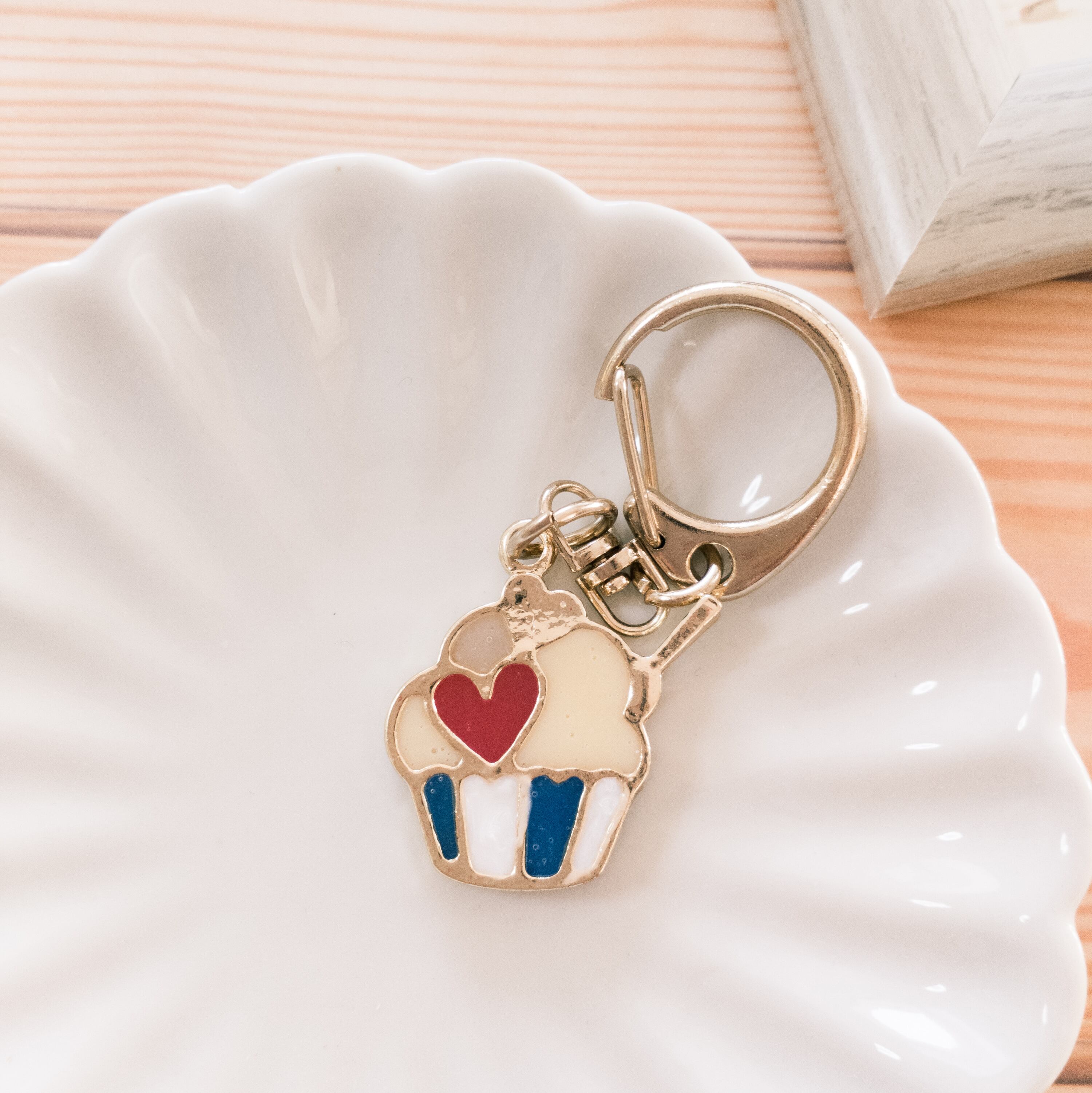 レジンで可愛い色に着色したカップケーキのキーホルダーです