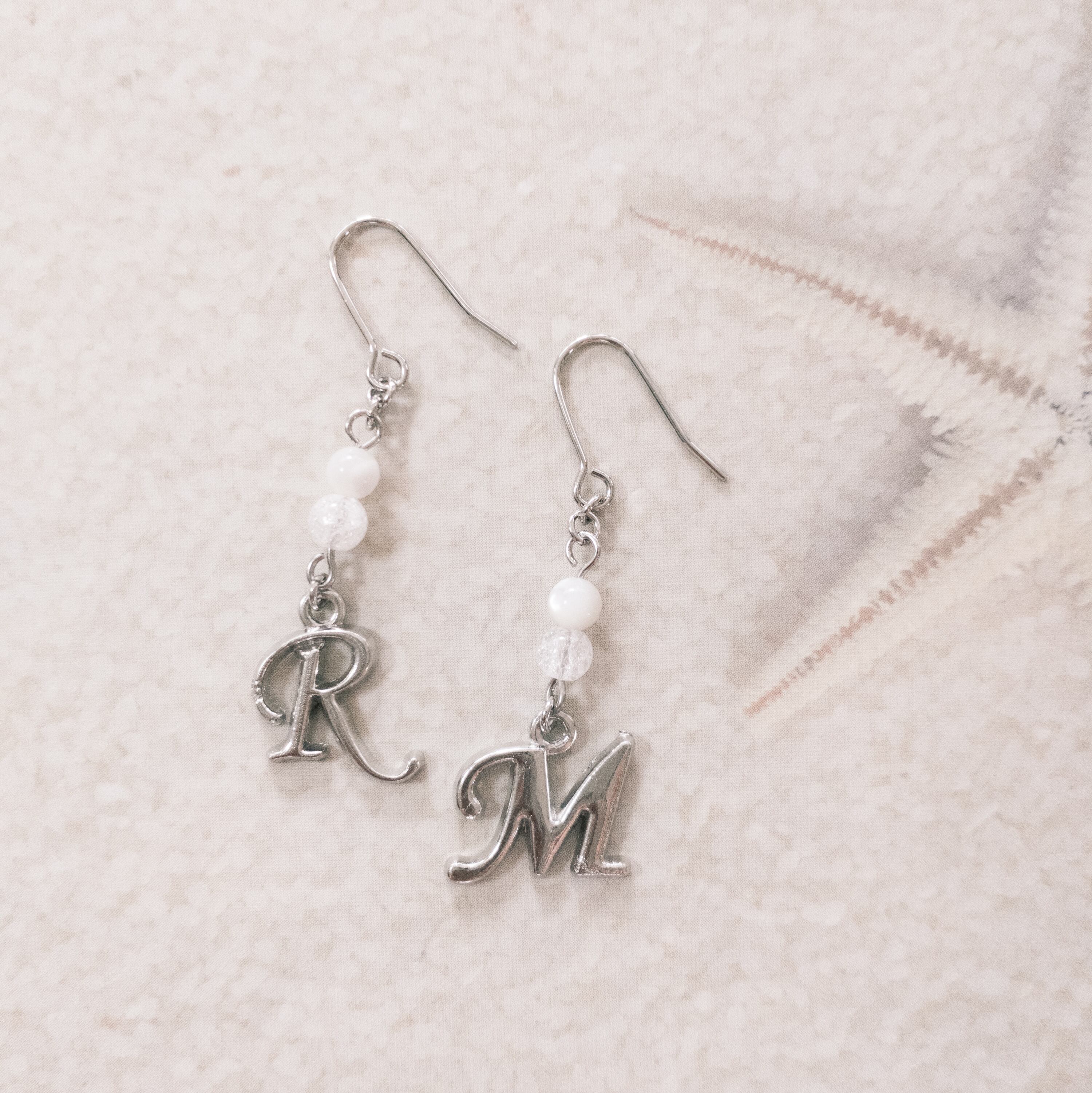 シルバーイニシャルピアス R.M(white)Snow